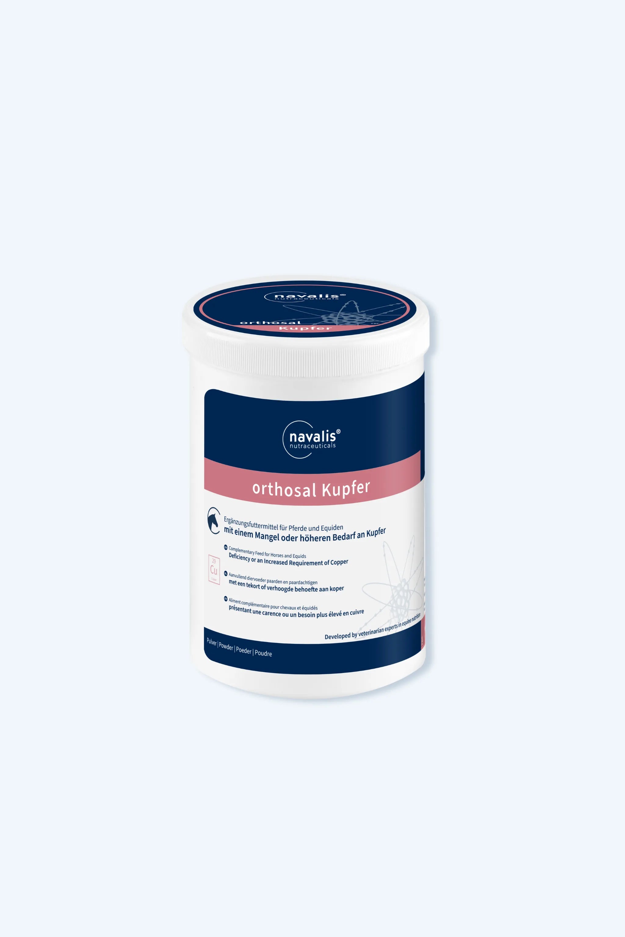 orthosal Kupfer – Wichtige Unterstützung für Bindegewebe, Sehnen und Fell für das Pferd. Kupfer ist ein essenzielles Spurenelement, das eine entscheidende Rolle bei der Bildung von Binde- und Stützgewebe spielt. Eine ausreichende Versorgung ist insbesondere bei Jungpferden im Wachstum sowie in der Rekonvaleszenz nach Verletzungen des Bewegungsapparates unerlässlich. Fehlt es an Kupfer, können Sehnen und Bänder nicht optimal aufgebaut oder regeneriert werden, was die Belastbarkeit des Bewegungsapparates beeinträchtigt und das Verletzungsrisiko erhöht. orthosal Kupfer: fördert die Entwicklung und Regeneration von Bindegewebe, Sehnen und Bändern, fördert die natürliche Pigmentierung von Haut und Fell, unterstützt dabei, Kupfermangel-bedingte Fellveränderungen wie die "Kupferbrille" zu vermeiden. Kupfer gilt zudem als essenziell für die Bildung des Haut- und Fellfarbstoffs Melanin. Ein Mangel kann zu Pigmentstörungen führen, die sich durch eine blasse Fellfarbe oder das charakteristische Ergrauen und Aufhellen dunkler Partien äußern. Besonders Pferde in Regionen mit sandigen, matschigen oder moorigen Böden sind von einer Unterversorgung betroffen. orthosal Kupfer ist ideal für Jungpferde im Wachstum, Pferde in der Regenerationsphase nach Verletzungen sowie Tiere mit Fellveränderungen aufgrund eines Kupfermangels. Eine gezielte Supplementierung kann dazu beitragen, die strukturelle Integrität des Bewegungsapparates zu erhalten und eine gesunde Pigmentierung zu unterstützen.