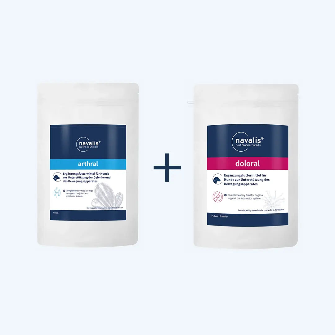 Verwöhnen Sie Ihren Hund mit navalis arthral dog für den Erhalt, den Aufbau und die Regeneration der Gelenkstrukturen sowie mit navalis doloral dog zur Förderung des Gelenkstoffwechsels und der Beweglichkeit. Ideal kombinierbar zur Regulation gestörter Stoffwechselvorgänge und zur natürlichen Unterstützung von gesunden Gelenken. Einzigartige Mischung aus Mikronährstoffen und bioaktiven Substanzen für maximale Mobilität und Wohlbefinden des Hundes.
